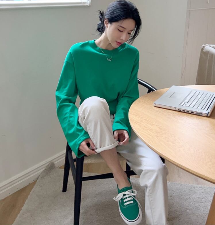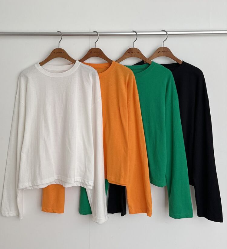 4色展開シャツ カジュアルシャツ カジュアル無地ロンT ラウンドネックトップス トップス Tシャツ シャツ プルオーバー 白シャツ 袖あり 長袖 萌袖 Uネック ラウンドネック ストレート Iライン かわいい 大人可愛い シンプル カジュアル 大人 上品 おしゃれ お洒落 かっこいい 大人可愛い 大人女子 こなれ感 ラフ ボーイッシュ スポーティー ガーリー クール モード系 モダン 主役級 存在感 無地 春 秋 冬 10代 20代 30代 40代 50代 60代 レディース 女性用 ママ OL 通勤