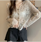 鍵編みレースのデザインが爽やかでかわいいトップス。