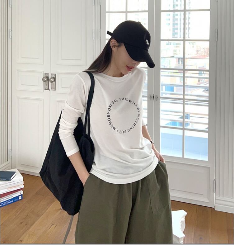 シンプルデザイン プリントロンT 長袖シャツ カジュアルロンT トップス Tシャツ シャツ プルオーバー 白シャツ 袖あり 長袖 Uネック ラウンドネック ストレート Iライン かわいい 大人可愛い シンプル カジュアル 大人 上品 おしゃれ お洒落 かっこいい 大人可愛い 大人女子 こなれ感 ラフ ボーイッシュ キュート ガーリー クール モード系 エレガント モダン 主役級 存在感 プリント 春 秋 冬 10代 20代 30代 40代 50代 60代 レディース 女性用 ママ OL 通勤 学生 通学