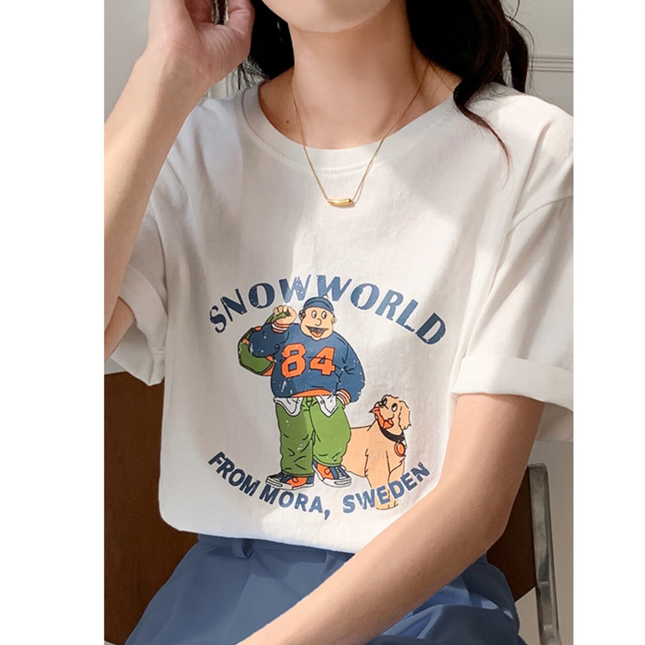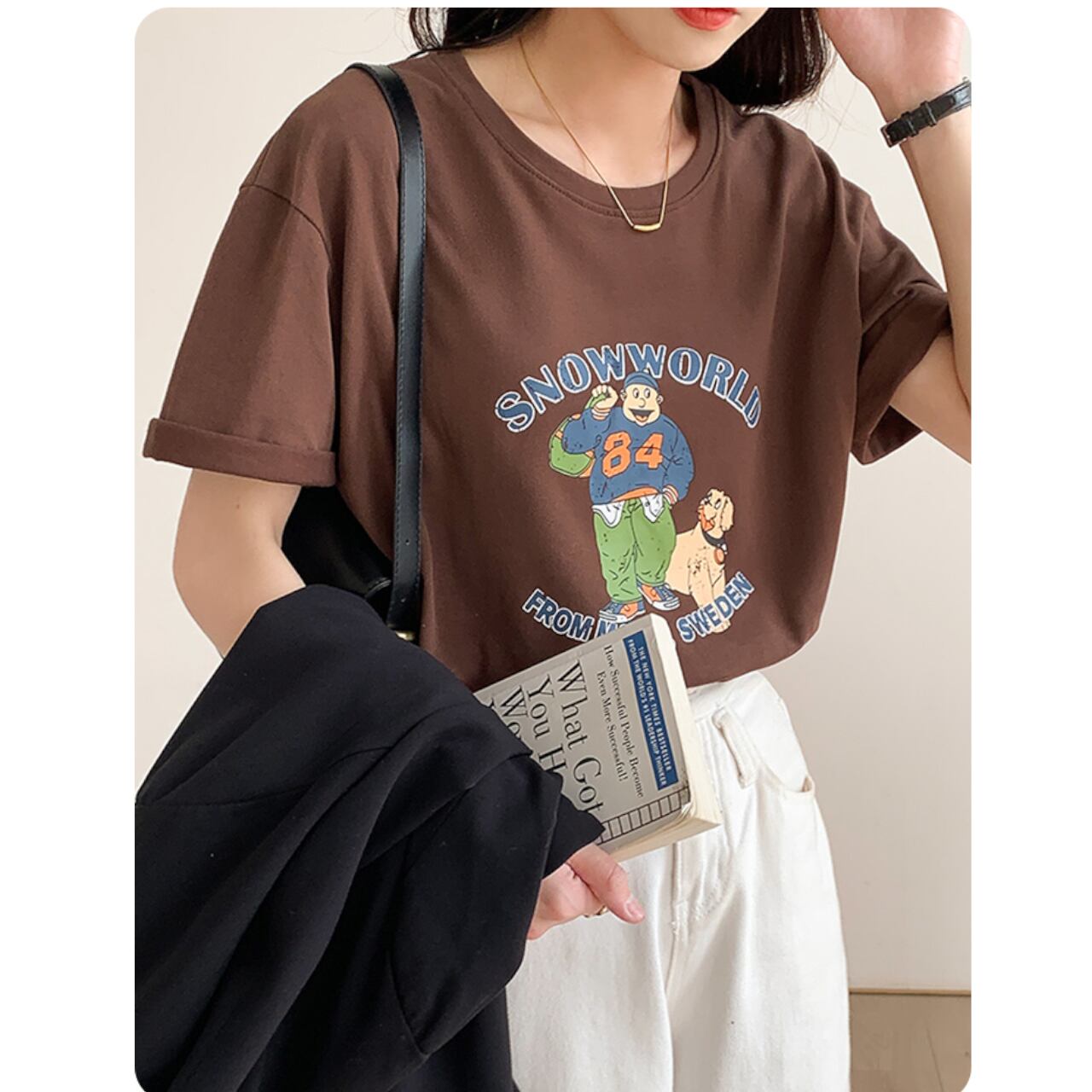 Tシャツ トップス 半袖 ラウンドネック かわいい 大人可愛い シンプル カジュアル おしゃれ お洒落 かっこいい こなれ感 ラフ ボーイッシュ スポーティー 個性的 クール 存在感 プリント オールシーズン レディース ママ 公園デビュー 女子会 休日 運動 アウトドア イベント 旅行 高原 ガーデン 普段使い 韓国系 ファッション コーデ スタイル S M L XL 2XL 3XL 白 ホワイト 茶色 ブラウン 灰色 グレー