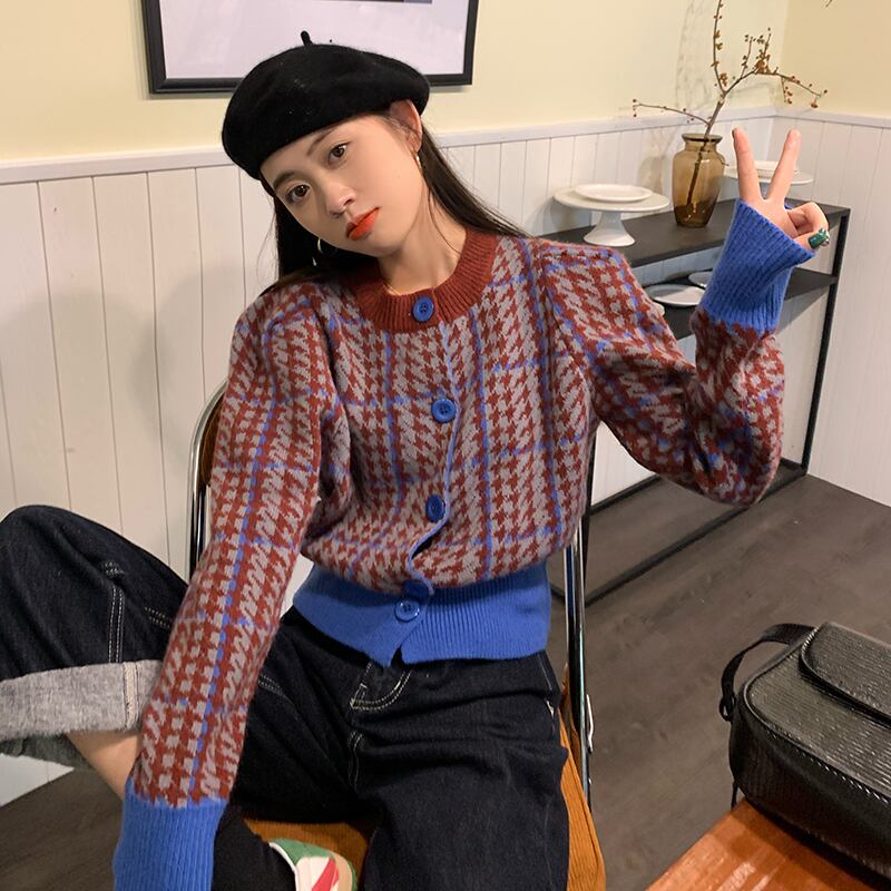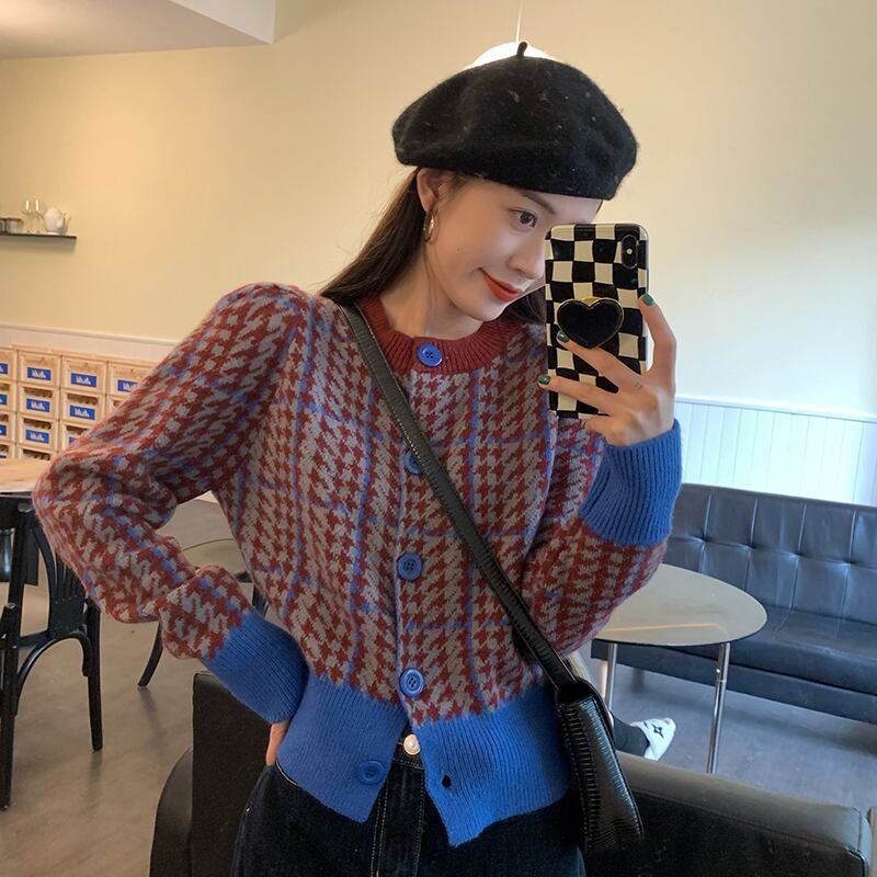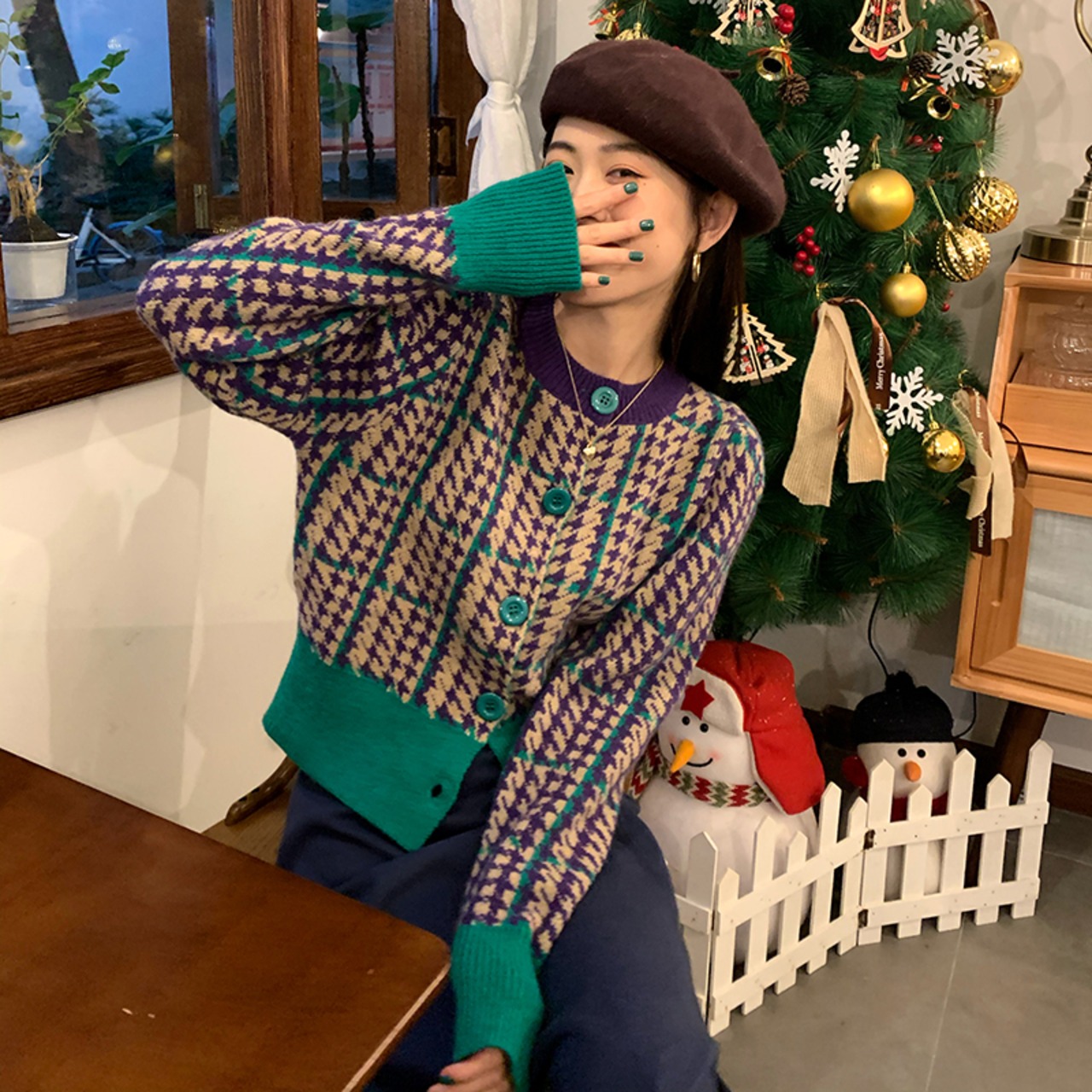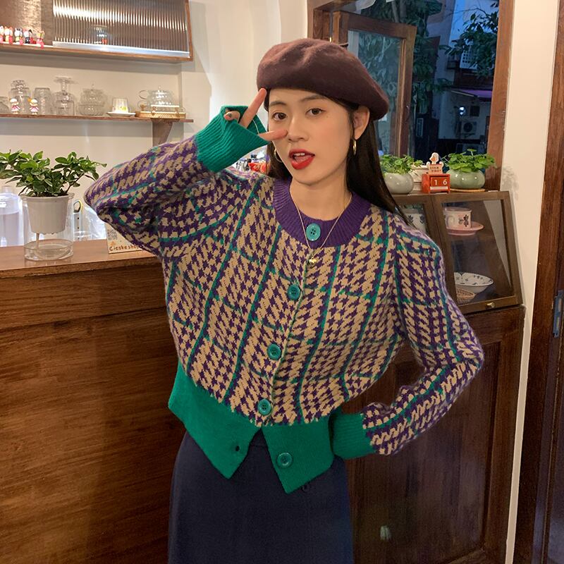 トップス ニットソー セーター プルオーバー カーディガン ミドル丈 レギュラー丈 袖なし 長袖 ラウンドネック ふわふわ 前開き ニット 厚手 アクリル かわいい 大人可愛い きれいめ シンプル カジュアル 大人 上品 お洒落 レトロ ラブリー キュート ガーリー 主役級 千鳥格子 秋 冬 10代 20代 30代 レディース デート お出かけ 休日 レストラン ショッピング 着回し 普段使い 重ね着 楽ちん 暖かい 防寒 インスタ映え フリーサイズ ワンサイズ 赤 レッド パープル バイカラー 秋カラー