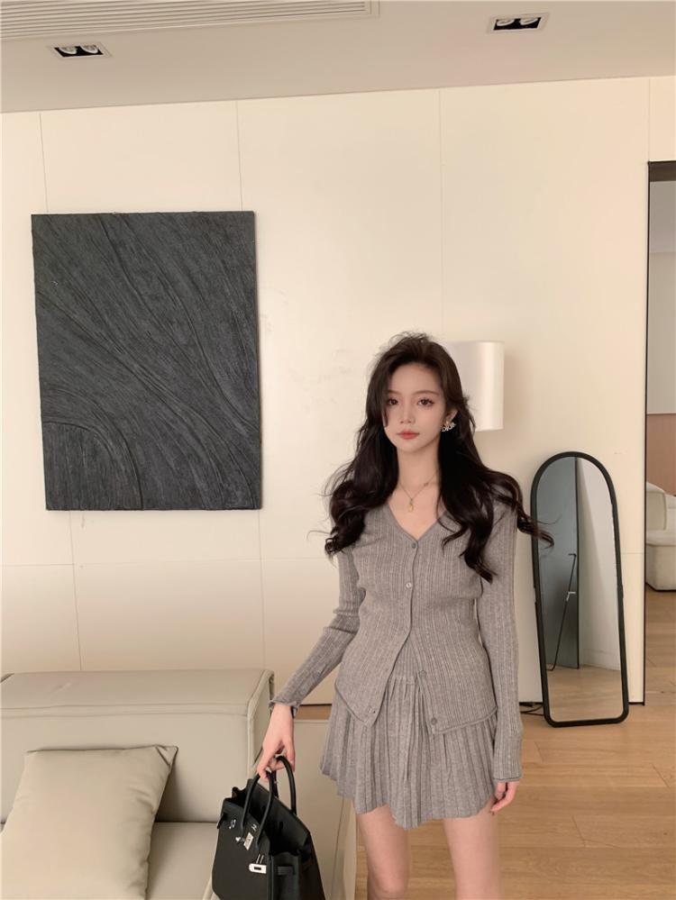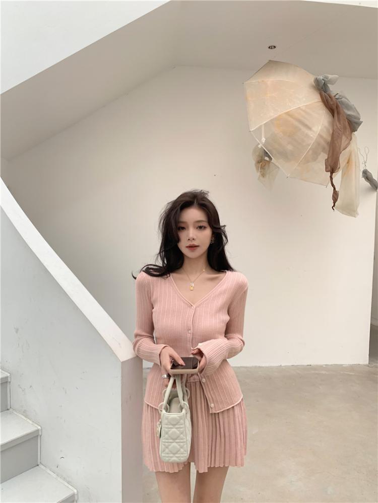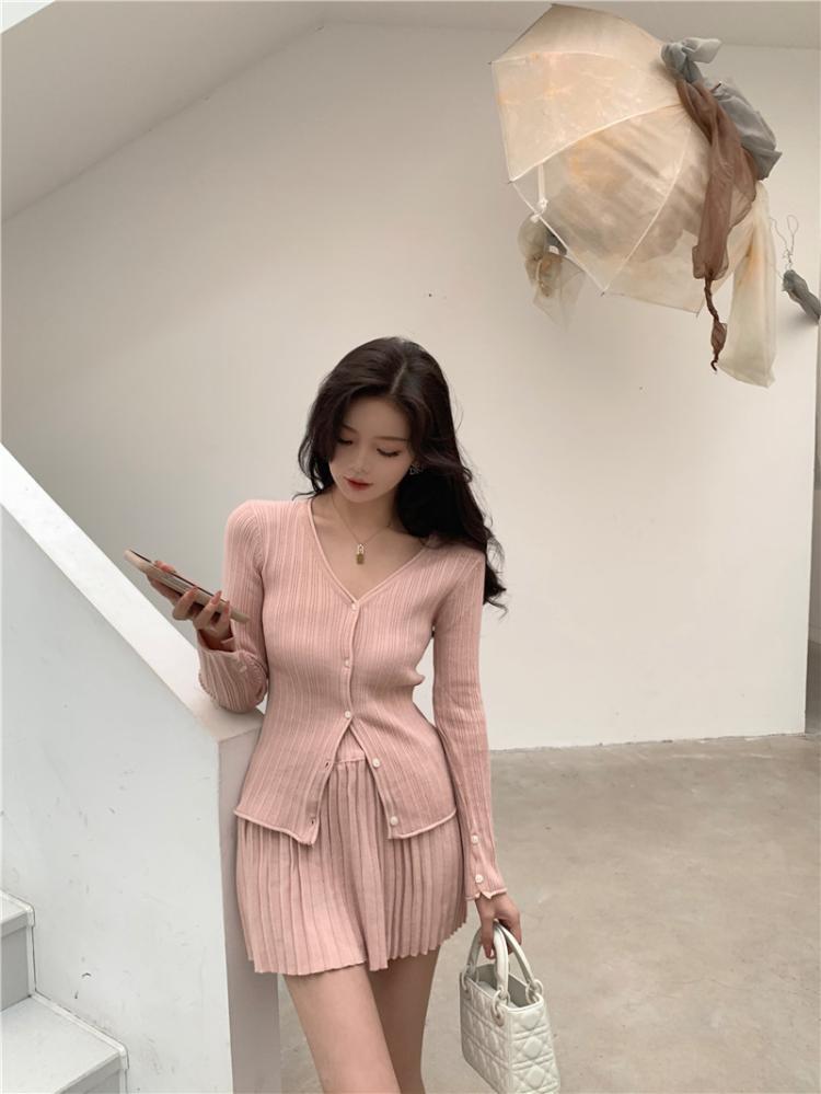 トップス スカート アウター ニットセーター カーディガン ミニスカート プリーツスカート ミニ丈 膝上 長袖 Vネック 細身 プリーツ 前開き ニット 上下セット 2点セット かわいい 大人可愛い きれいめ シンプル カジュアル 大人 上品 おしゃれ 大人女子 ガーリー クール 無地 冬 誕生日 クリスマス バレンタイン 10代 20代 レディース 女性用 OL 学生 デート お出かけ 女子会 ホテル レストラン 普段使い モテ
