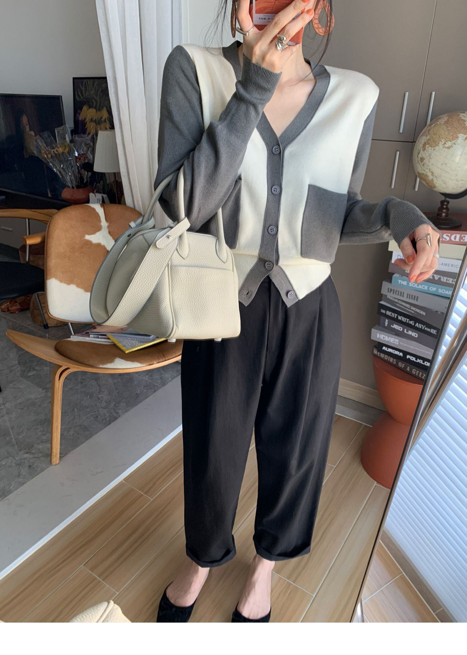 シンプルながら存在感のある切り替えデザインカーディガン☆