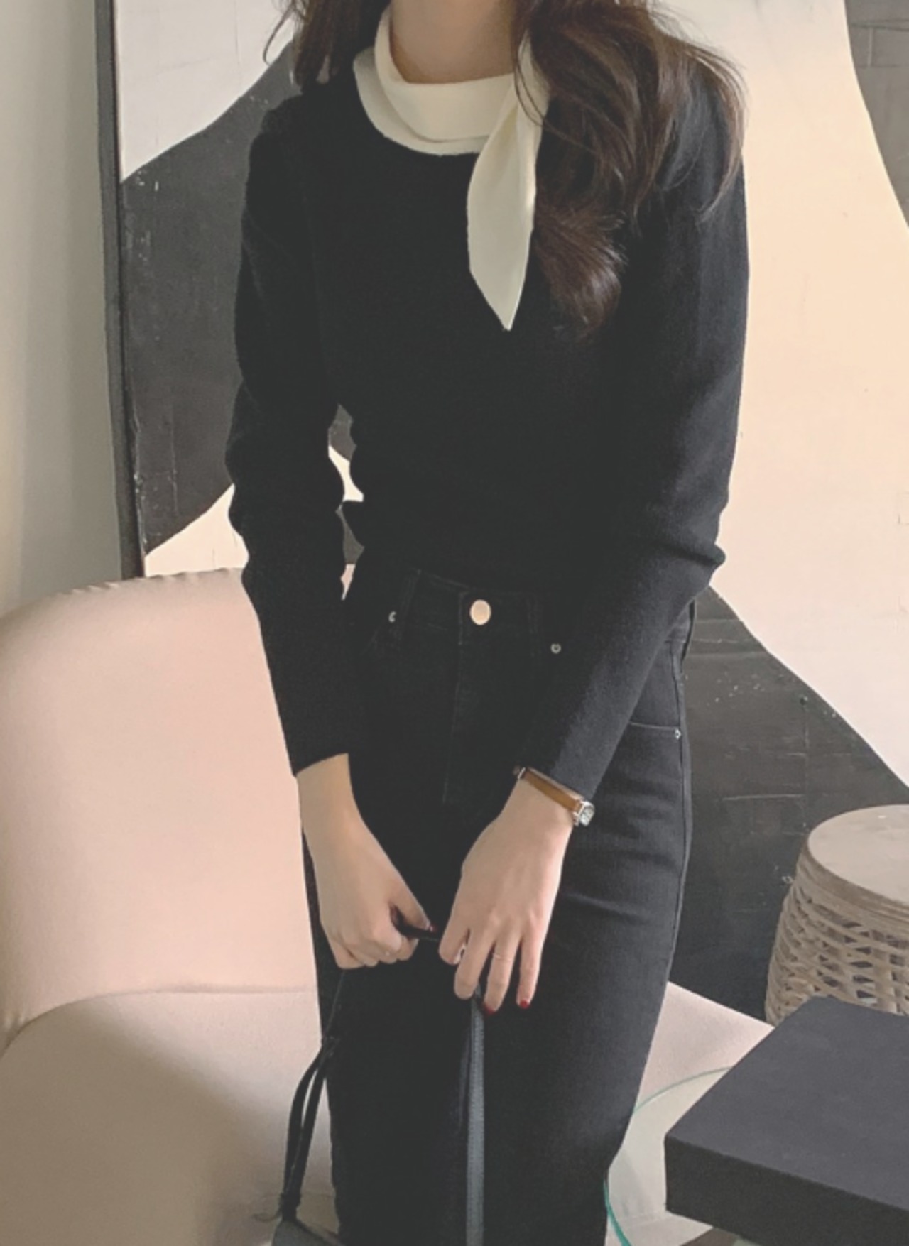 リボンにもスカーフにも見える襟が首元をすっきりと見せてくれるので、大人っぽい印象になります。また、スリムなシルエットなので、スタイルアップ効果も抜群です。10代から60代まで幅広い世代に着ていただけるので、プレゼントにもおすすめです。
