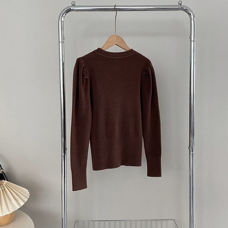 トップス カットソー ニットソー セーター プルオーバー ミディアム丈 ミドル丈 レギュラー丈 袖あり 長袖 パフスリーブ ラウンドネック スリム タイト 細身 ストレート 伸縮性 ニット 薄手 アクリル シンプル カジュアル 大人 上品 大人女子 クール 無地 春 秋 冬 ビジネス OL 通勤 学生 通学 デート お出かけ 着回し 普段使い 重ね着 楽ちん 暖かい 防寒 定番 フリーサイズ ジャスト サイズ ワンサイズ 茶色 ブラウン 大人カラー ベイクドカラー 秋カラー