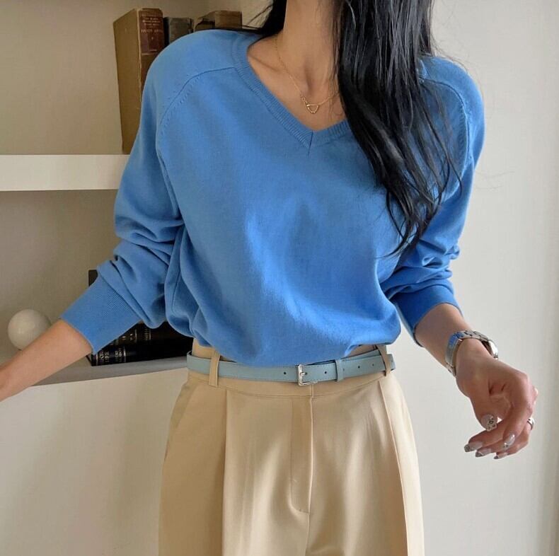 シンプルなVネックとラグランスリーブが大人っぽく上品なセーターです☆