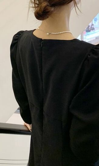 ワンピース ロングスカート フレアスカート フレアワンピース ワンピドレス ミモレ丈 ロング丈 7分袖 パフスリーブ スクエアネック ファスナー かわいい 大人可愛い きれいめ シンプル 大人 上品 おしゃれ 大人女子 キュート ガーリー 主役級 無地 誕生日 入学式 入園式 卒業式 卒園式 謝恩会 10代 20代 30代 40代 レディース 女性用 ママ OL 学生 デート お出かけ 女子会 パーティー ホテル レストラン モテ ブラック