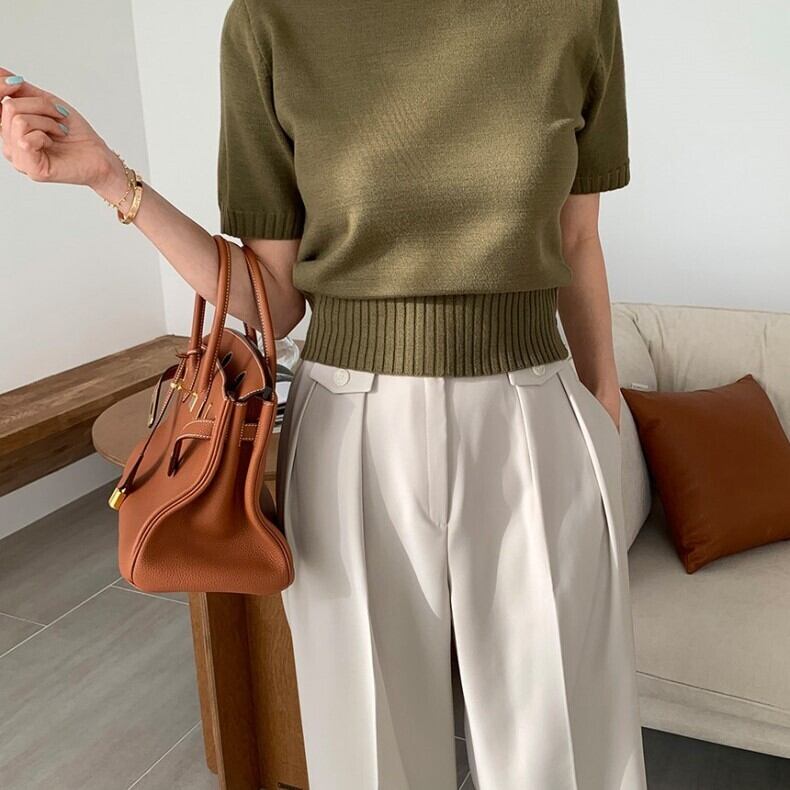 オフィスでは、ブラウスやシャツと合わせて、デイリーコーディネートでは、Tシャツやニットなどのカジュアルなトップスと合わせることで、リラックス感のあるスタイルを楽しむことができます。