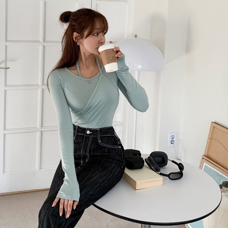 ホルターネック トップス Tシャツ 長袖 ラウンドネック ホルターネック スリム タイト 細身 かわいい 大人可愛い シンプル カジュアル おしゃれ お洒落 かっこいい 大人可愛い 大人女子 こなれ感 ラフ キュート 個性的 セクシー 存在感 無地 春 秋 冬 レディース ママ OL 学生 デート お出かけ 女子会 お泊まり 休日 イベント リゾート 旅行 ショッピング 着回し 普段使い 重ね着 韓国系 ファッション コーデ スタイル モテ インスタ映え ワンサイズ 白 ホワイト 黒 緑 グリーン