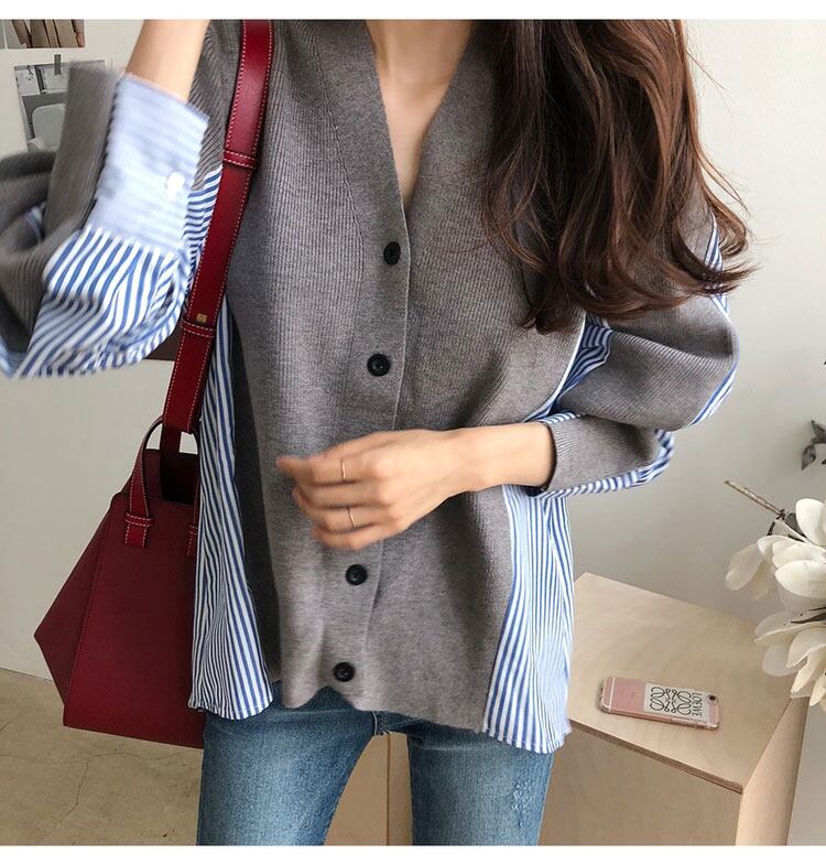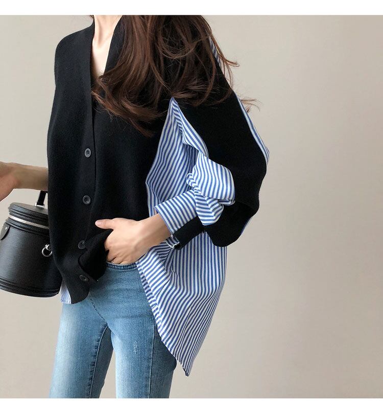 トップス シャツ ブラウス カーディガン ニット ニットカーディガン 袖あり 長袖 Vネック ゆったり 切り替えデザイン ドッキング 異素材MIX かわいい 大人可愛い カジュアル 大人 おしゃれ お洒落 かっこいい 個性的 主役級 存在感 春 秋 10代 20代 レディース 女性用 ママ 通勤 学生 通学 デート お出かけ 女子会 イベント 旅行 レストラン サイズ S M L XL ブラック グレー
