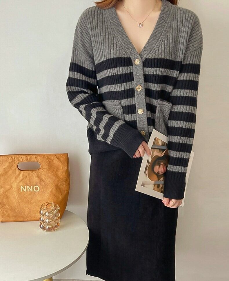 トップス ニットソー セーター カーディガン ミディアム丈 ミドル丈 レギュラー丈 袖あり 長袖 ドロップショルダー 萌袖 Vネック ポケット リブ 前開き ニット 厚手 アクリル かわいい 大人可愛い きれいめ シンプル カジュアル おしゃれ レトロ ボーイッシュ スポーティー ボーダー シマ ママ マタニティ 通勤 通学 お出かけ 休日 ショッピング 着回し 普段使い 重ね着 楽ちん 暖かい 防寒 体系カバー ビッグサイズ ゆったり ゆる ワンサイズ 黒 グレー 大人カラー モノトーン