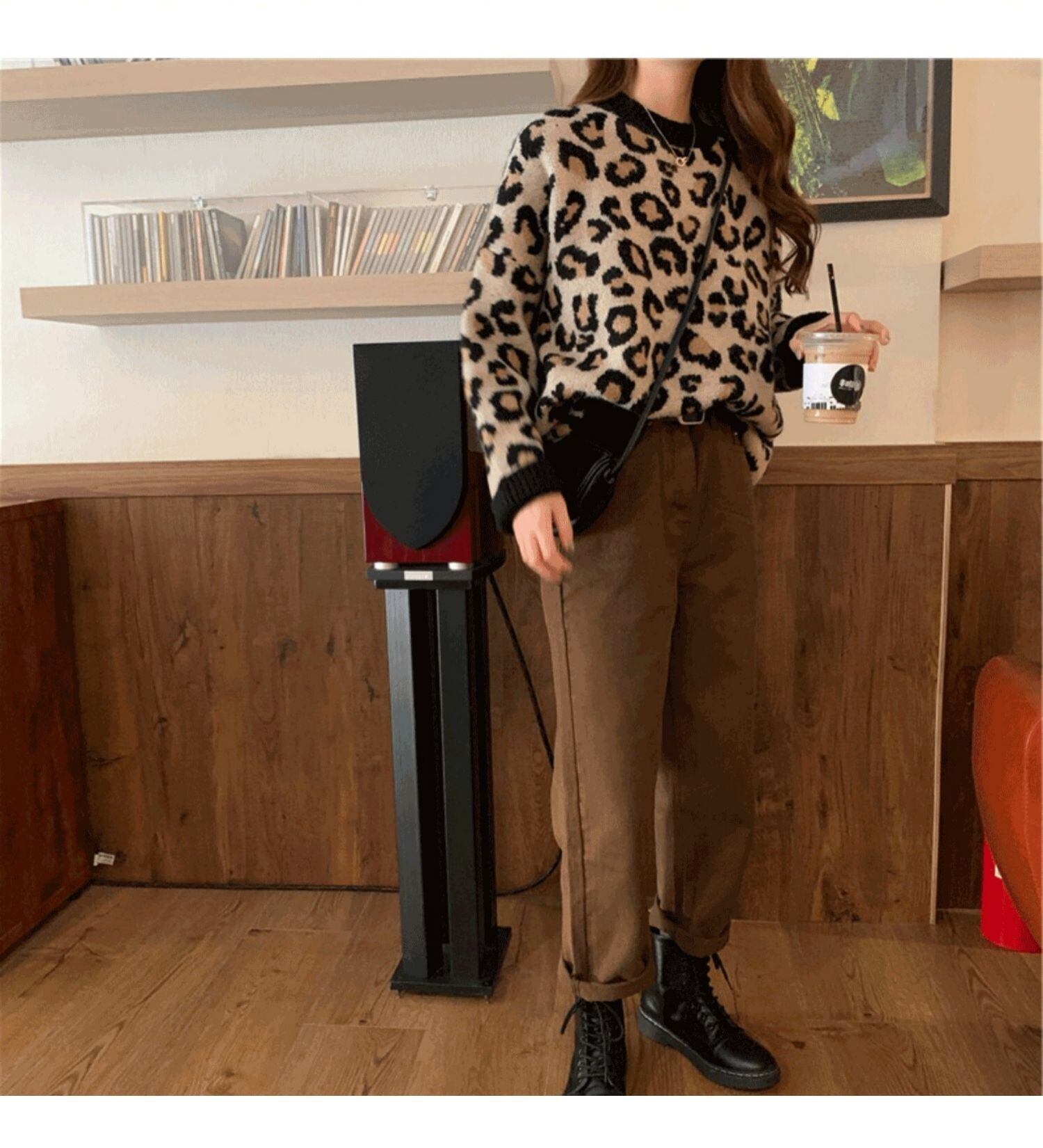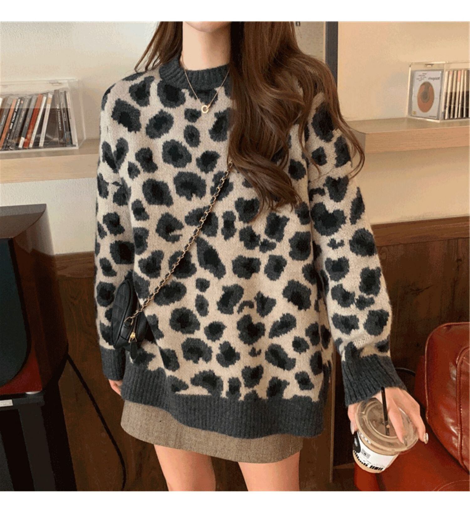 トップス ニットソー セーター プルオーバー ロング ロング丈 袖あり 長袖 ボリューム袖 ドロップショルダー 萌袖 ラウンドネック クルーネック 裾ワイド もこもこ モコモコ ふわふわ ニット 厚手 アクリル かわいい 大人可愛い カジュアル 大人 かっこいい キュート 個性的 主役級 ヒョウ柄 レオパード アニマル柄 秋 冬 レディース お出かけ 休日 ショッピング 着回し 普段使い 楽ちん 暖かい モテ 体系カバー S M L XL 黒 茶色 ブラウン 大人カラー ベイクドカラー 秋カラー
