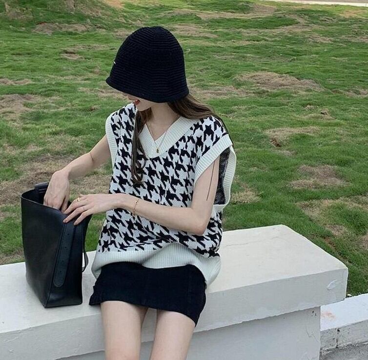 大きめ千鳥格子が大人かわいい、ニットベストです♪