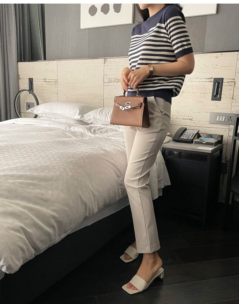 伸縮性のある薄手のニット素材なので、春夏のお出かけ着にぴったり!