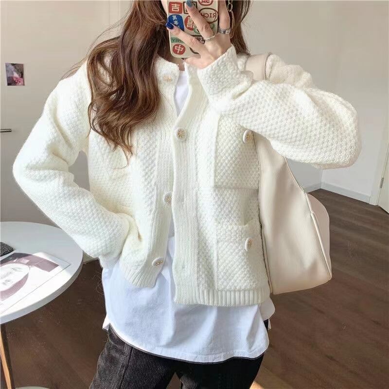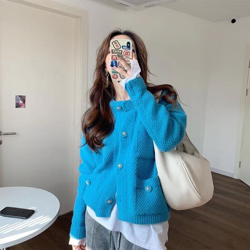 トップス ニットソー セーター カーディガン コート ブルゾン ジャケット ミニ ミニ丈 ショート ショート丈 袖あり 長袖 ラウンドネック ポケット 前開き ニット 厚手 アクリル 大人可愛い 上品 おしゃれ 大人女子 ラブリー キュート ガーリー ルーズ エレガント 柄 春 秋 冬 レディース OL 通勤 学生 通学 デート お出かけ 休日 レストラン ショッピング 着回し 普段使い 重ね着 楽ちん 暖かい 防寒 モテ S M L XL ビッグサイズ ゆったり ゆる 白 ホワイト 青 ブルー ピンク
