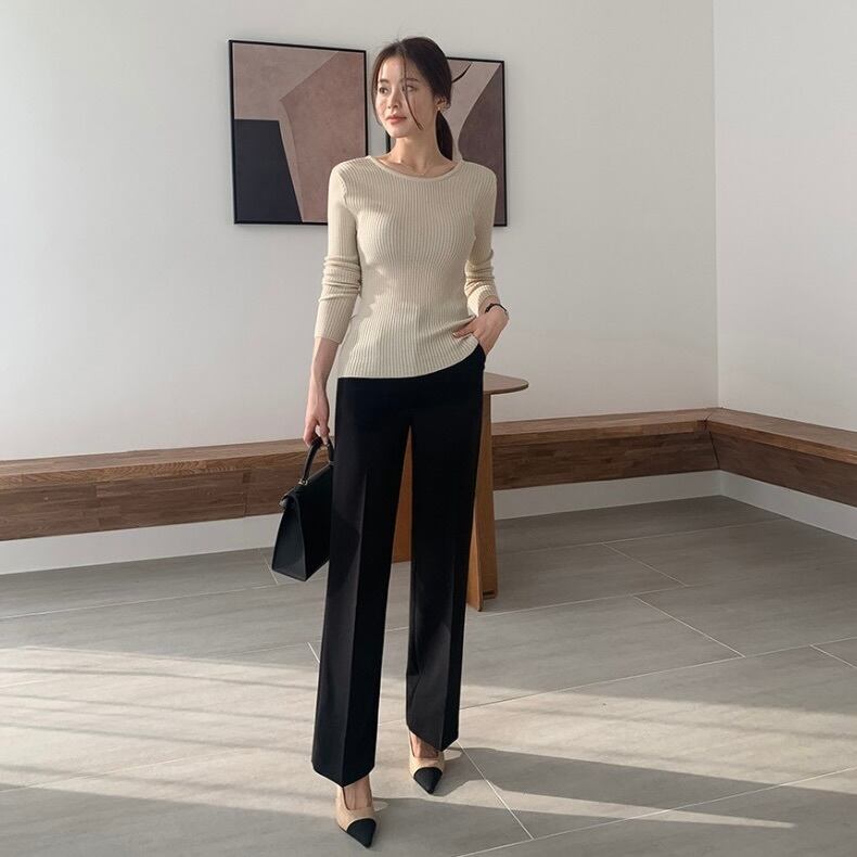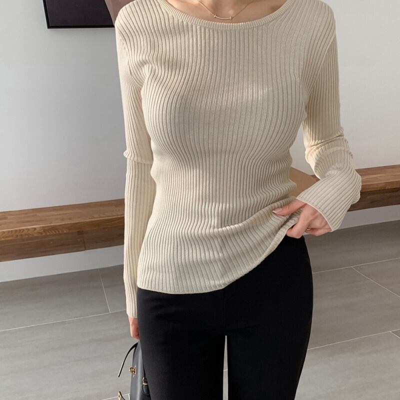 トップス ニットソー 袖あり 長袖 Vネック Uネック 襟なし スリム タイト 細身 リブ 伸縮性 大人可愛い きれいめ シンプル 大人 上品 おしゃれ 大人女子 こなれ感 クール モード系 セクシー エレガント モダン フォーマル 無地 春 秋 冬 10代 20代 30代 レディース オフィス OL デート お出かけ 女子会 休日 着回し 普段使い 韓国 オルチャン ファッション コーデ スタイル モテ トレンド インスタ映え
