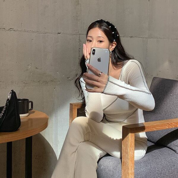 トップス カットソー 長袖 ラウンドネック スリム タイト リブ かわいい 大人可愛い きれいめ 大人 おしゃれ お洒落 かっこいい 大人可愛い 大人女子 こなれ感 個性的 クール モード系 セクシー エレガント 存在感 春 秋 冬 二次会 クリスマス バレンタイン レディース ママ デート お出かけ 女子会 お泊まり 休日 パーティー イベント リゾート 旅行 レストラン ショッピング 韓国 韓国系 オルチャン ファッション コーデ スタイル モテ インスタ映え ワンサイズ 白 ホワイト 黒