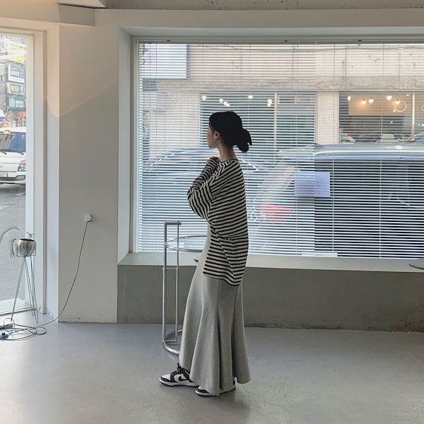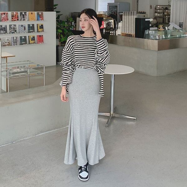 オーバーサイズで大人可愛いボーダー柄ロングTシャツ。