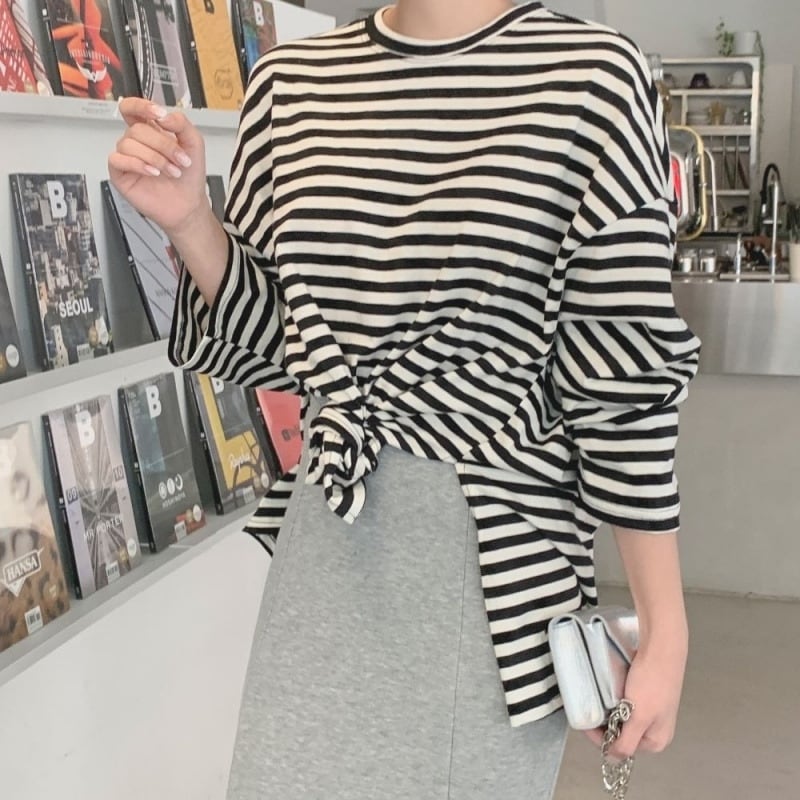 ボーダー柄 ロング丈 ロンT オーバーサイズトップス Tシャツ 長袖 ラウンドネック サイドスリット 大人可愛い きれいめ シンプル カジュアル かっこいい 大人可愛い 大人女子 こなれ感 ラフ ボーイッシュ 抜け感 ボーダー 春 秋 冬 レディース ママ マタニティ 学生 デート お出かけ 公園デビュー 女子会 お泊まり 休日 アウトドア イベント リゾート 旅行 ショッピング 着回し 普段使い 重ね着 韓国 韓国系 ファッション コーデ 楽ちん モテ 体系カバー インスタ映え ワンサイズ