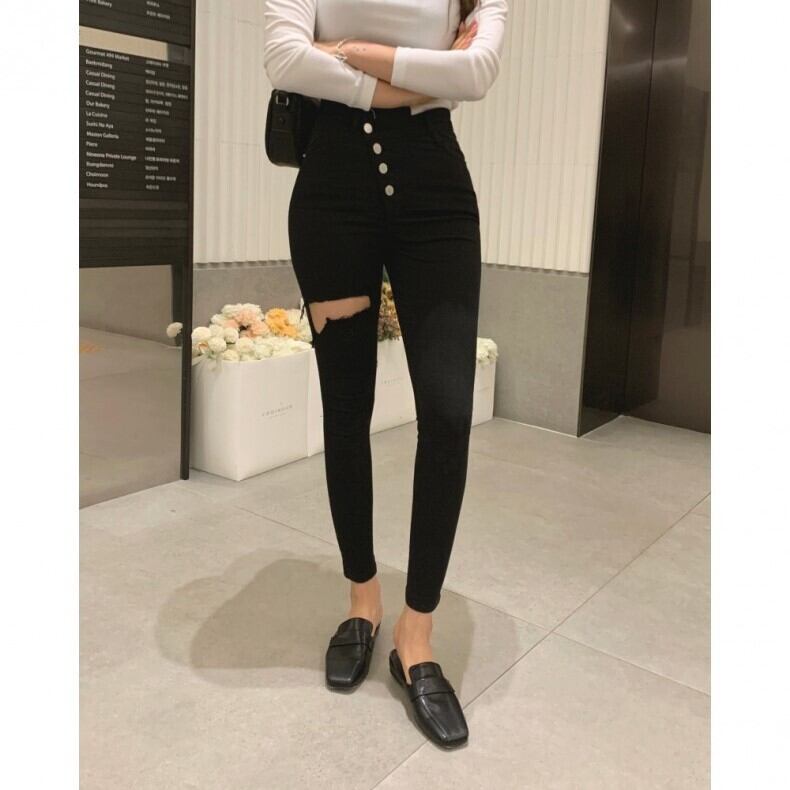 ダメージ加工がヴィンテージ感やロックテイストを醸し出し、スタイリッシュな印象を与えます。