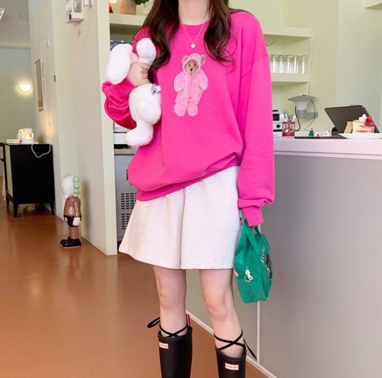 ガーリーコーデ テディベア トップス プルオーバー トレーナー 袖あり 長袖 ボリューム袖 Uネック ラウンドネック ストレート Iライン かわいい 大人可愛い シンプル カジュアル 大人 上品 おしゃれ お洒落 大人可愛い 大人女子 こなれ感 ラフ ラブリー キュート ガーリー ルーズ 個性的 モダン 主役級 存在感 抜け感 キャラクター プリント 秋 冬 10代 20代 30代 40代 レディース 女性用 キッズ 女の子 OL お出かけ 公園デビュー 女子会 着回し 普段使い お揃い 双子