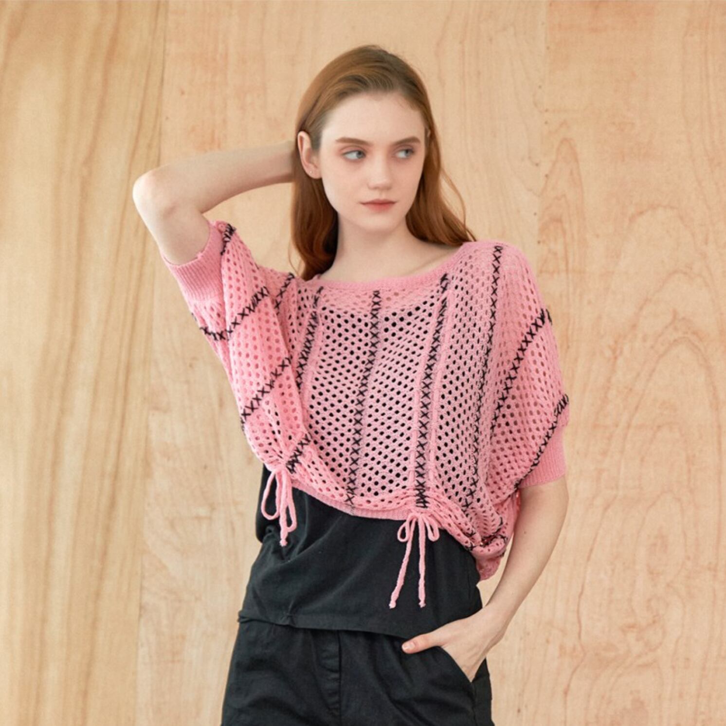 トップス ニット ショート ショート丈 袖あり 半袖 ラウンドネック ゆったり リボン クロシェ 透け感 ギャザー メッシュ かわいい 大人可愛い カジュアル 大人 大人可愛い 大人女子 ラブリー キュート ガーリー 個性的 夏 10代 20代 レディース 女性用 学生 通学 デート お出かけ 女子会 お泊まり 休日 イベント 旅行 ショッピング お出かけ お買い物 重ね着 韓国 韓国系 ゆったり ワンサイズ ホワイト イエロー ピンク