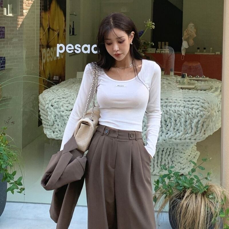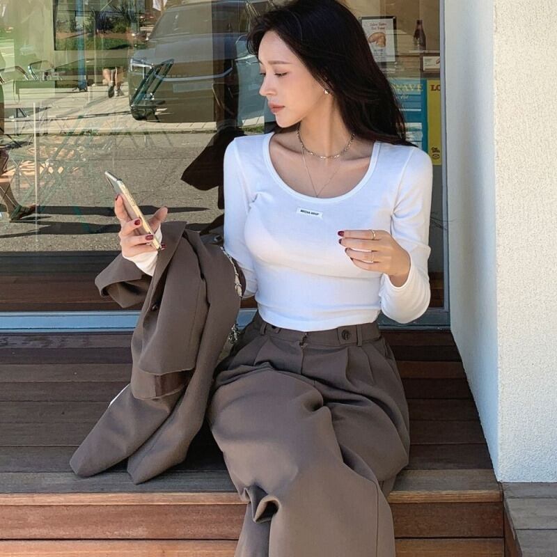 ショート丈 トップス Tシャツ カットソー 長袖 ラウンドネック スリム タイト 細身 大人可愛い きれいめ シンプル カジュアル 大人 かっこいい 大人女子 こなれ感 ラフ スポーティー クール セクシー 抜け感 無地 春 秋 冬 レディース OL 学生 お出かけ 女子会 お泊まり 休日 アウトドア イベント リゾート 旅行 着回し 普段使い 重ね着 ファッション コーデ トレンド 白 ホワイト 黒 ブラック グレー