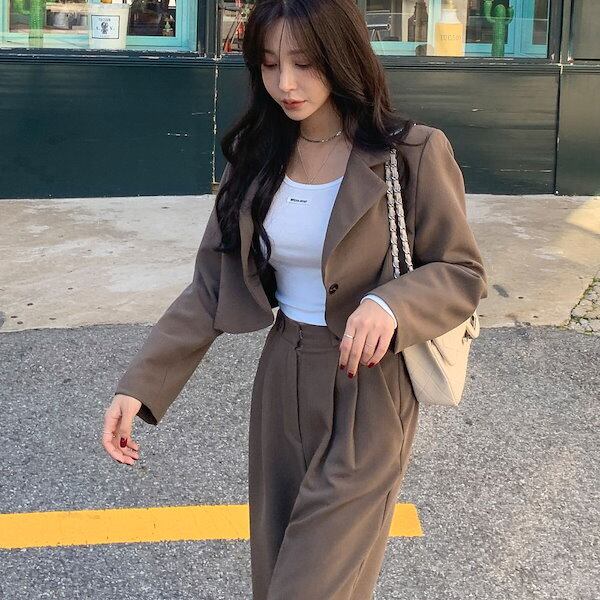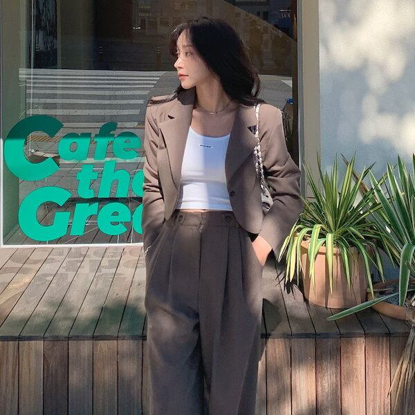 しっかりとした生地感で、細身のシルエットが大人っぽい雰囲気を演出します。