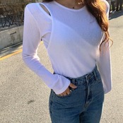 シンプルでありながら個性的なデザインで、カジュアルなコーディネートにもぴったりです。透け感もあるので、女性らしい印象も加えることができます。