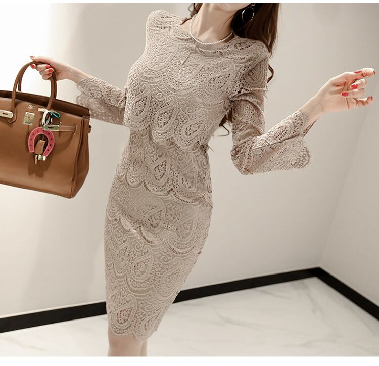 ワンピース イブニングドレス パーティードレス ワンピドレス 膝丈 ひざ丈 ミモレ ミモレ丈 ミディアム丈 長袖 Uネック スリム タイト 細身 レース 大人 上品 おしゃれ かっこいい 大人女子 個性的 セクシー エレガント 主役級 存在感 フォーマル セレブ ラグジュアリー 花柄 オールシーズン 謝恩会 二次会 クリスマス 20代 30代 40代 レディース 女性用 ママ デート お出かけ パーティー イベント ホテル レストラン ショッピング S M L XL 大きいサイズ ジャスト ベージュ