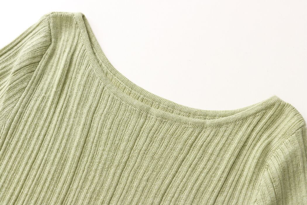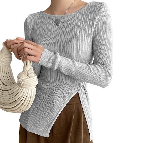 トップス ブラウス カットソー ミディアム丈 袖あり 長袖 萌袖 Uネック ラウンドネック 襟なし スリム タイト 細身 スリット サイドスリット リブ 透け感 かわいい 大人可愛い きれいめ シンプル 大人 上品 おしゃれ こなれ感 個性的 クール モード系 エレガント モダン とろみ感 抜け感 無地 春 秋 デート お出かけ 女子会 休日 着回し 普段使い 韓国 オルチャン ファッション コーデ スタイル トレンド インスタ映え