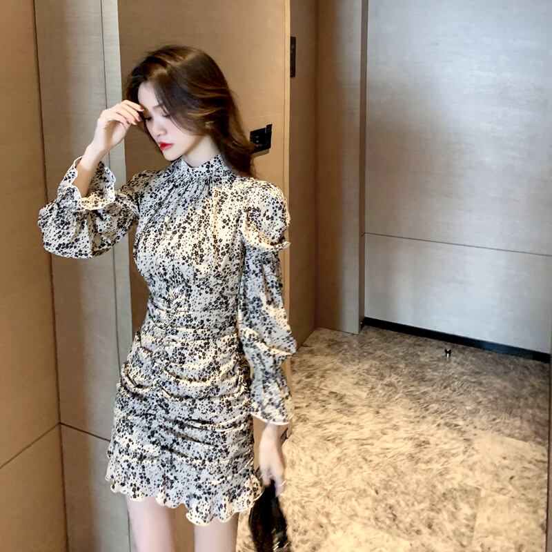 ワンピース パーティードレス ワンピドレス ヒップスカート ミニ ミニ丈 ショート ショート丈 長袖 パフスリーブ スタンドカラー スリム タイト 細身 プリーツ シフォン 大人 上品 おしゃれ 大人女子 こなれ感 ラブリー ガーリー 個性的 セクシー エレガント 主役級 存在感 花柄 シャーリング オールシーズン 謝恩会 クリスマス バレンタイン 20代 30代 レディース 女性用 デート お出かけ お泊まり パーティー イベント ホテル ガーデン レストラン ショッピング 脚長 S M L XL