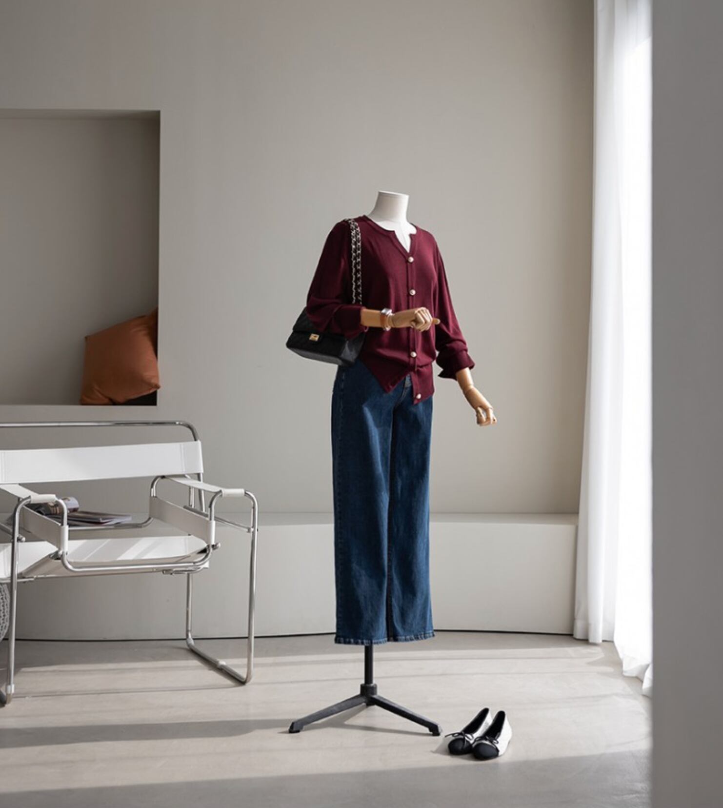 シンプルで上品なニットカーディガン。キーネックデザインが魅力的な一枚で、首元をキレイに見せてくれ、大人可愛さを演出します。大人の魅力を引き立てる、そんな一枚です。