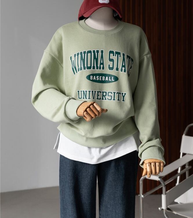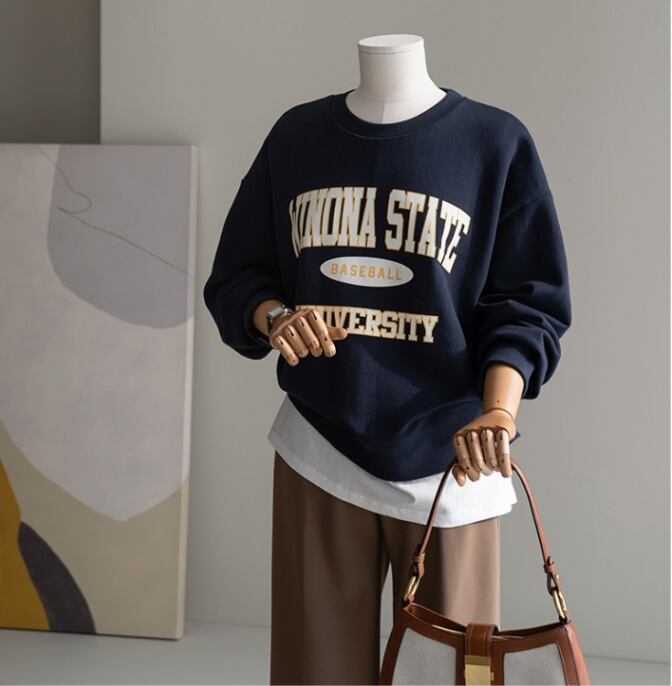 重ね着風 ロゴプリント トップス プルオーバー トレーナー 袖あり 長袖 ボリューム袖 Uネック ラウンドネック ストレート ワイド Iライン かわいい 大人可愛い シンプル カジュアル 大人 上品 おしゃれ お洒落 かっこいい 大人可愛い 大人女子 こなれ感 ラフ ボーイッシュ ガーリー ルーズ クール モード系 モダン 主役級 存在感 プリント 秋 冬 10代 20代 30代 40代 50代 60代 レディース 女性用 ママ OL 通勤 学生 お出かけ 公園デビュー 休日 アウトドア イベント 旅行