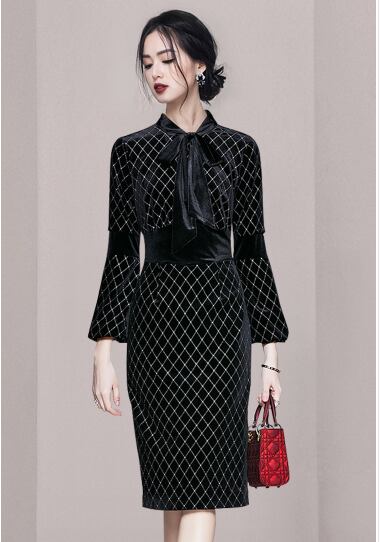 レトロな雰囲気が魅力のエレガントなドレスワンピース。ミモレ丈で膝下を隠しつつ、タイトな細身シルエットで脚を美しく見せてくれます。