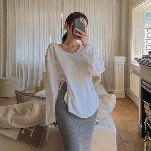 ロンT トップス Tシャツ 長袖 ラウンドネック スリット サイドスリット かわいい 大人可愛い シンプル カジュアル 大人 おしゃれ お洒落 かっこいい 大人女子 こなれ感 ラフ ボーイッシュ スポーティー ルーズ クール セクシー 抜け感 無地 春 夏 秋 冬 レディース ママ マタニティ デート 公園デビュー 女子会 お泊まり 休日 運動 アウトドア イベント リゾート 旅行 高原 着回し 普段使い 重ね着 韓国系 オルチャン ファッション コーデ スタイル 楽ちん モテ 体系カバー フリーサイズ