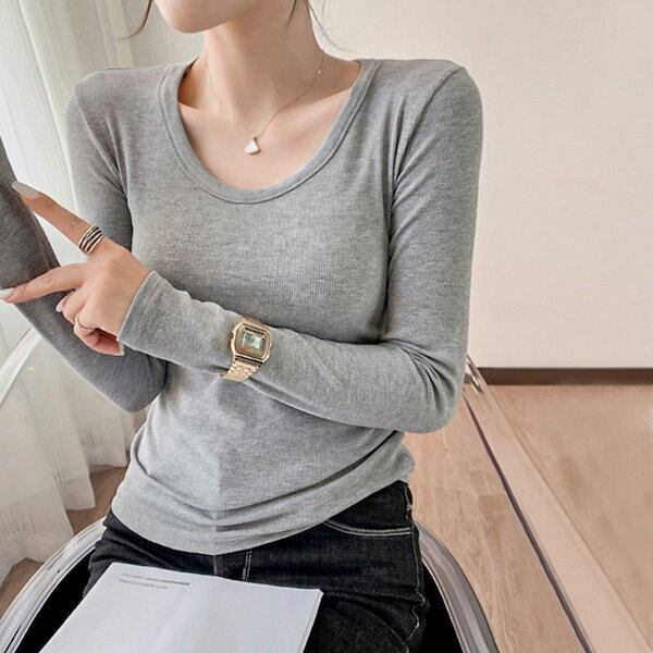 ロンT トップス カットソー 長袖 ラウンドネック スリム タイト リブ 大人可愛い きれいめ シンプル カジュアル 大人 かっこいい 大人女子 こなれ感 ラフ スポーティー クール セクシー 抜け感 無地 春 秋 冬 誕生日 謝恩会 二次会 母の日 レディース ママ オフィス ビジネス OL 通勤 学生 デート お出かけ 女子会 お泊まり 休日 アウトドア イベント リゾート 旅行 着回し 普段使い 重ね着 ファッション コーデ スタイル 楽ちん S M L XL 2XL ホワイト ブラック グレー