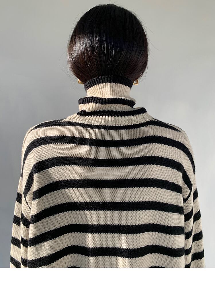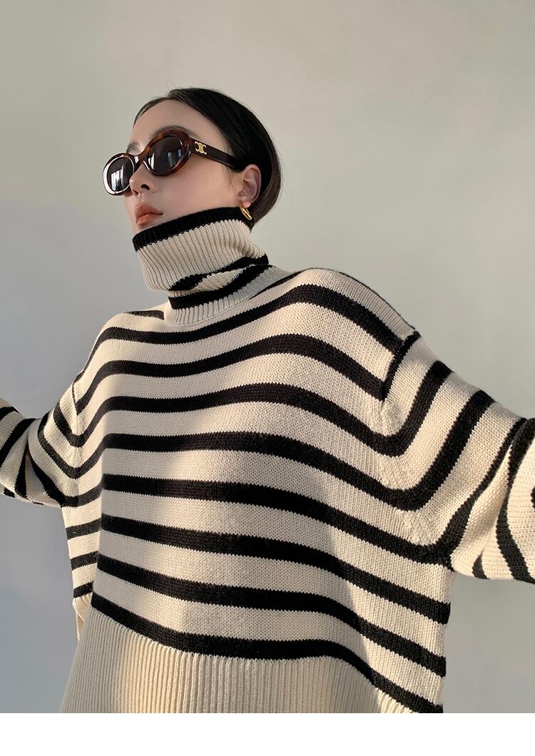 セーター レギュラー丈 袖あり 長袖 タートルネック ストレート ワイド スリット サイドスリット バイカラー 配色 ニット リブニット カジュアル おしゃれ かっこいい レトロ こなれ感 ラフ ユニセックス ルーズ 個性的 抜け感 カレッジ風 ボーダー 春 秋 10代 20代 30代 40代 50代 60代 レディース 女性用 お出かけ 休日 旅行 ショッピング 合コン カフェ 着回し 普段使い 韓国系 楽ちん 体型カバー トレンド 2XL 大きいサイズ 大きめ ゆったり ブラック ベージュ 大人カラー
