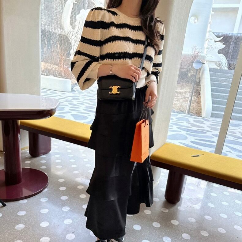 スカートなどの甘めなアイテムと合わせるのがおすすめです。
