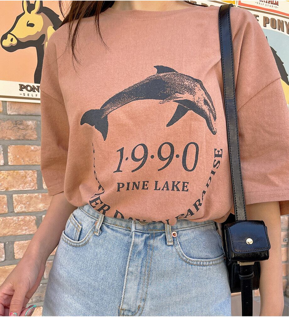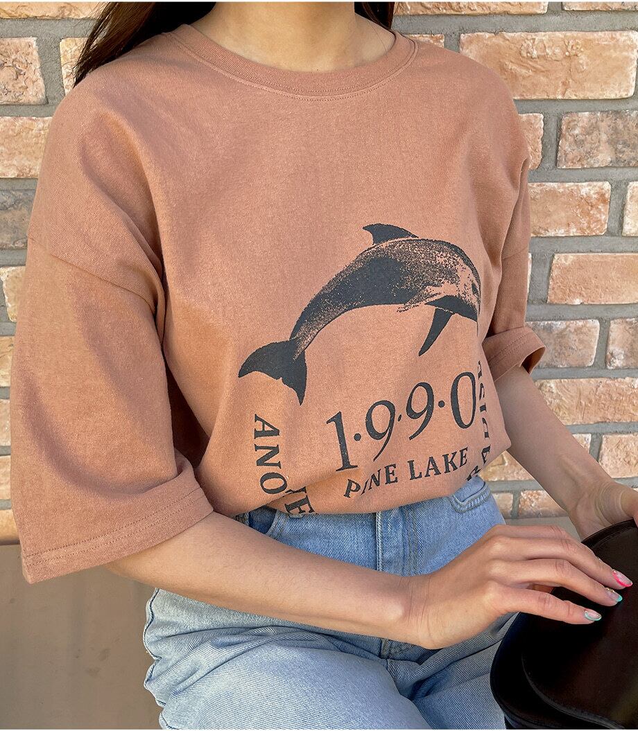 イルカのプリントがかわいい、トレンドライクなボックスシルエットのTシャツです。