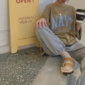 トップス Tシャツ 半袖 ドロップショルダー クルーネック カジュアル おしゃれ ラフ ボーイッシュ スポーティー ルーズ プリント 学生 通学 デート お出かけ 女子会 休日 着回し 普段使い 楽ちん フリーサイズ ブラウン ネイビー