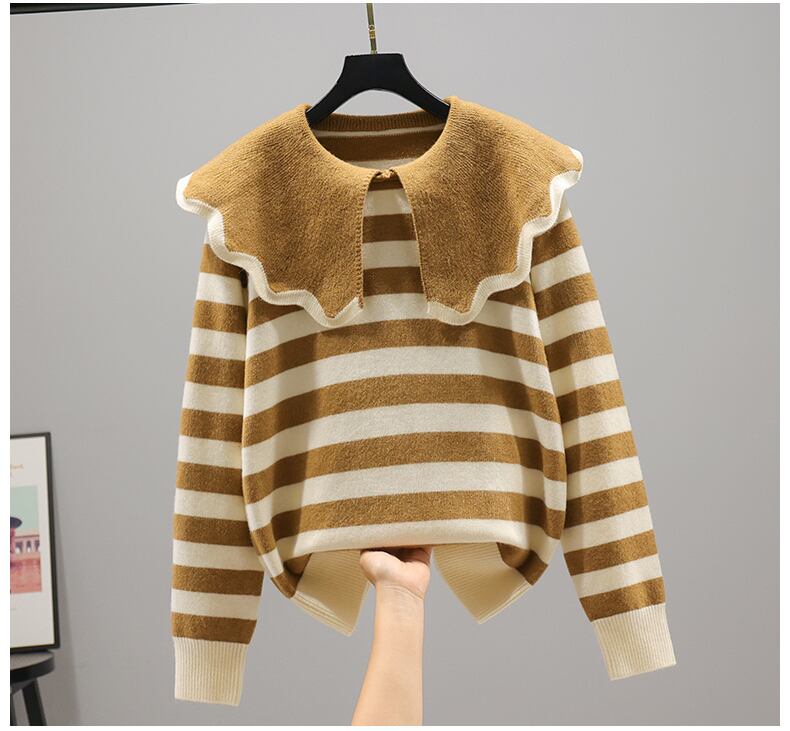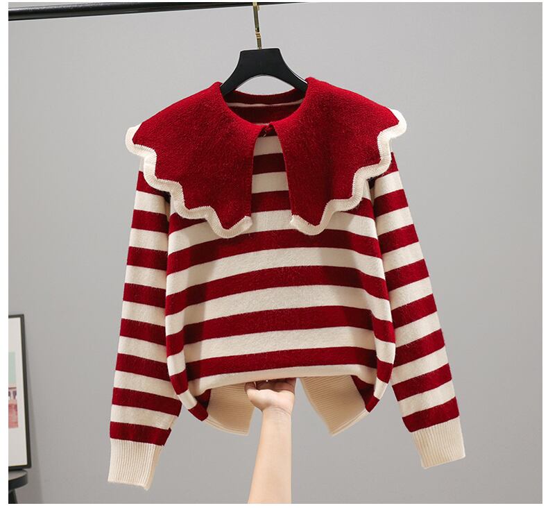 ニットセーター トップス セーター プルオーバー ニット 袖あり 長袖 襟付き かわいい 大人可愛い カジュアル 大人 おしゃれ お洒落 かっこいい レトロ 大人可愛い 大人女子 こなれ感 キュート ガーリー 個性的 主役級 存在感 ボーダー シマ 春 秋 10代 20代 レディース 女性用 通勤 学生 通学 デート お出かけ 女子会 休日 旅行 レストラン ショッピング お出かけ お買い物 韓国 韓国系 オルチャン ファッション ワンサイズ ライムグリーン レッド ベージュ ブラック オリーブグリーン
