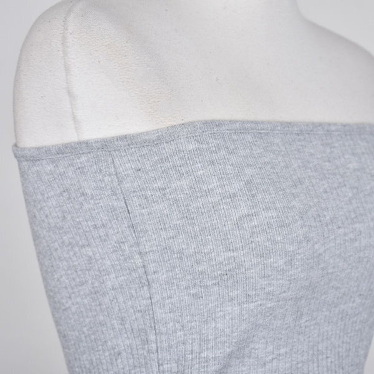 このチューブトップは、シンプルで大人可愛いデザインが特徴です。