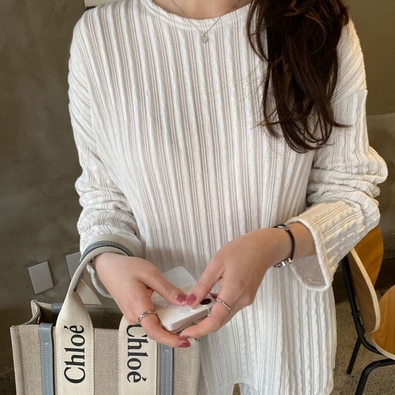 リブニット ラウンドネック トップス カットソー 長袖 透け感 薄手 かわいい 大人可愛い きれいめ シンプル カジュアル 大人 上品 おしゃれ お洒落 かっこいい 大人女子 こなれ感 ラフ ルーズ 個性的 クール モード系 とろみ感 抜け感 無地 オールシーズン レディース ママ マタニティ OL 学生 デート お出かけ 女子会 休日 アウトドア イベント リゾート 旅行 着回し 普段使い 重ね着 韓国系 ファッション コーデ スタイル 楽ちん 体系カバー フリーサイズ ブルー グレー オフホワイト