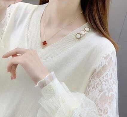 トップス ニットソー セーター プルオーバー ニット 長袖 レース袖 フリル袖 Vネック モックネック レース チュール 切り替えデザイン ドッキング 透け感 シースルー 伸縮性 薄手 飾りボタン キラキラ かわいい 大人可愛い きれいめ シンプル カジュアル 上品 おしゃれ こなれ感 ガーリー エレガント 着心地 フェミニン 甘辛ミックス 花柄レース 繊細 クラシカル レディース ママ OL 学生 着回し 普段使い S M L XL 2XL ゆったり レディライク 白 ホワイト 黒 ブラック ベージュ