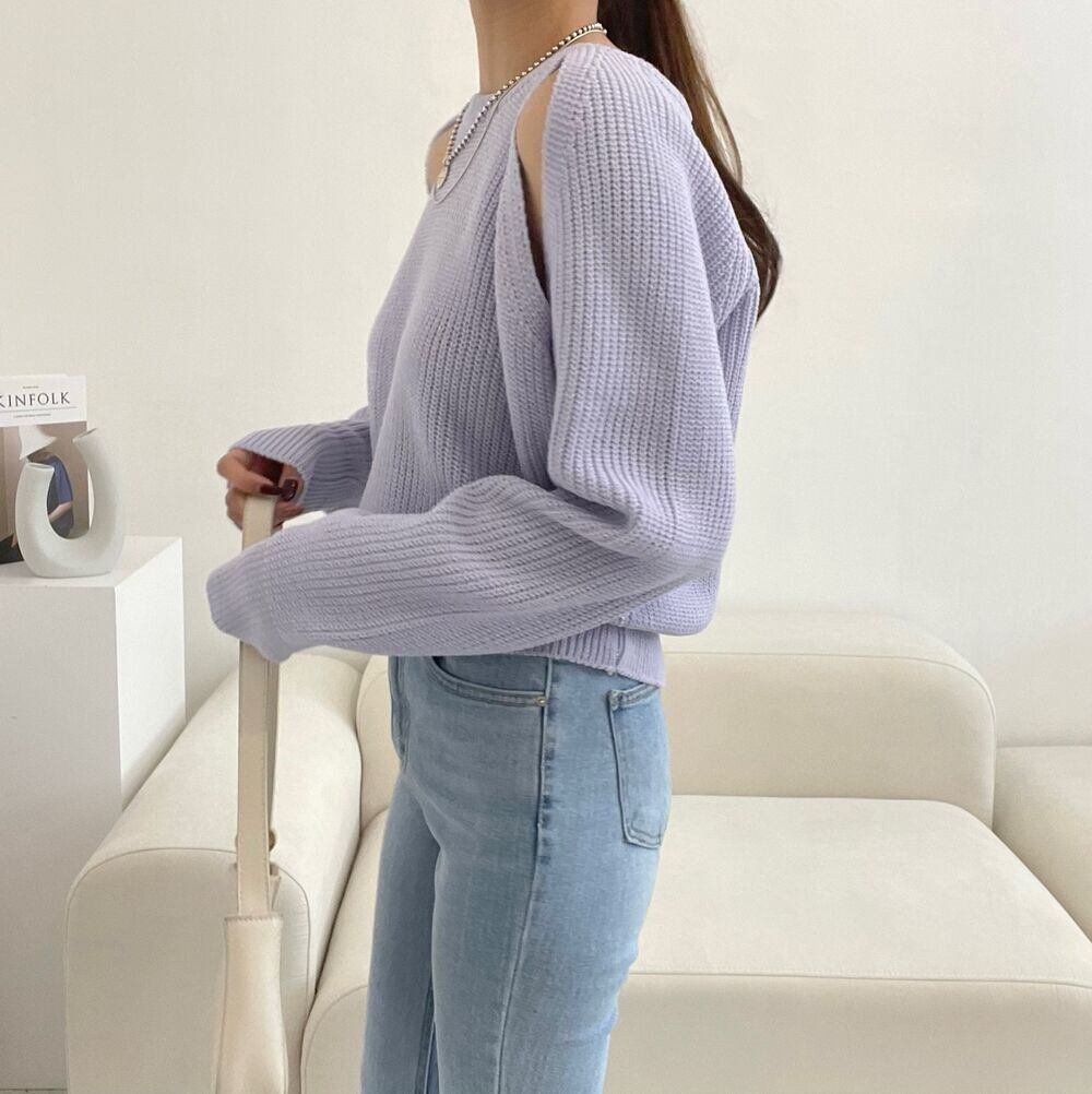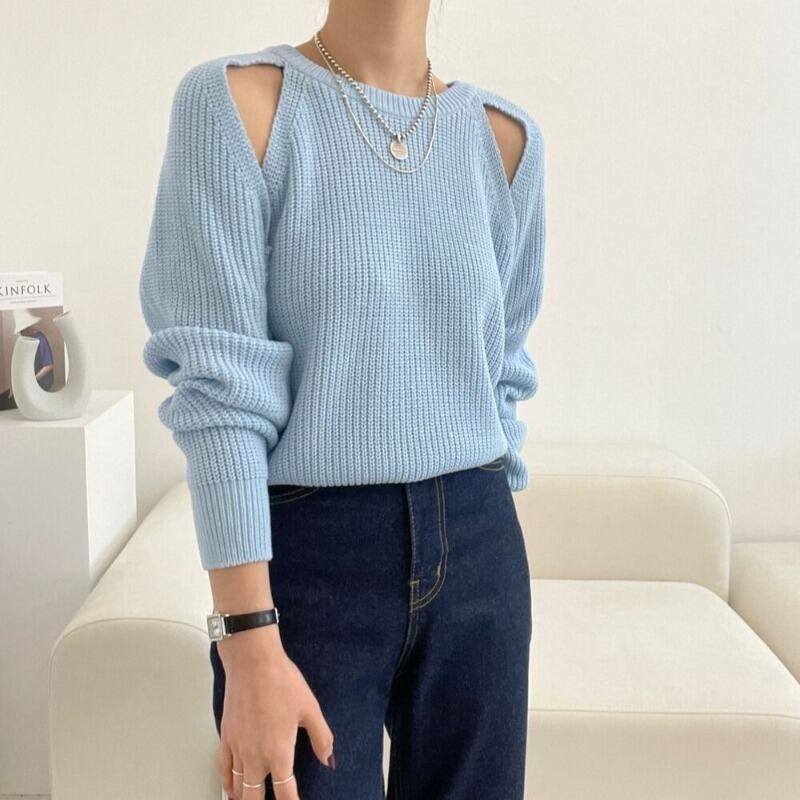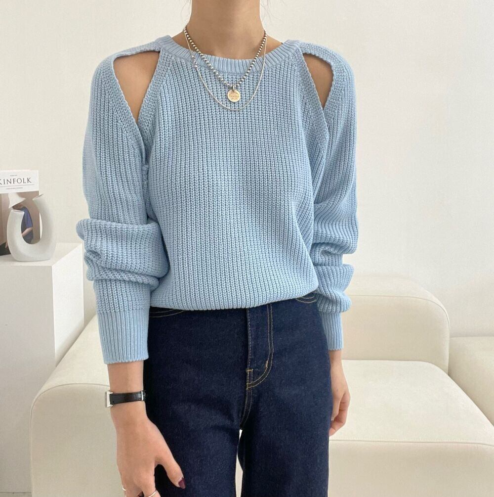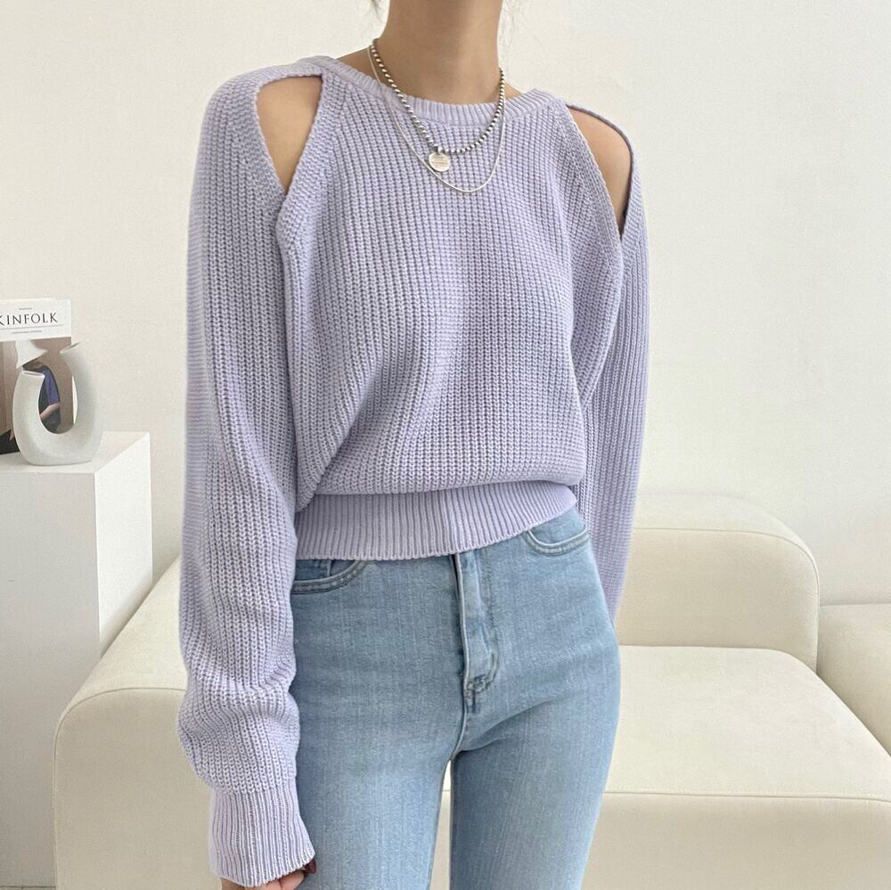 トレンド感満載のショルダーオープンデザインのニットトップス。