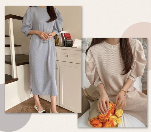 ワンピース ワンピドレス ミモレ ミモレ丈 ロング ロング丈 袖あり 5分袖 五分袖 7分袖 七分袖 長袖 ボリューム袖 パフスリーブ ラウンドネック クルーネック 襟なし スリム 細身 ストレート Iライン サイドスリット ポケット 薄手 かわいい 大人可愛い きれいめ シンプル カジュアル 大人 上品 おしゃれ お洒落 ガーリー 大人女子 無地 春 夏 秋 10代 20代 30代 40代 50代 60代 レディース ファッション 楽ちん モテ ゆったり 黒 ブラック ブルー ベージュ ライトブルー