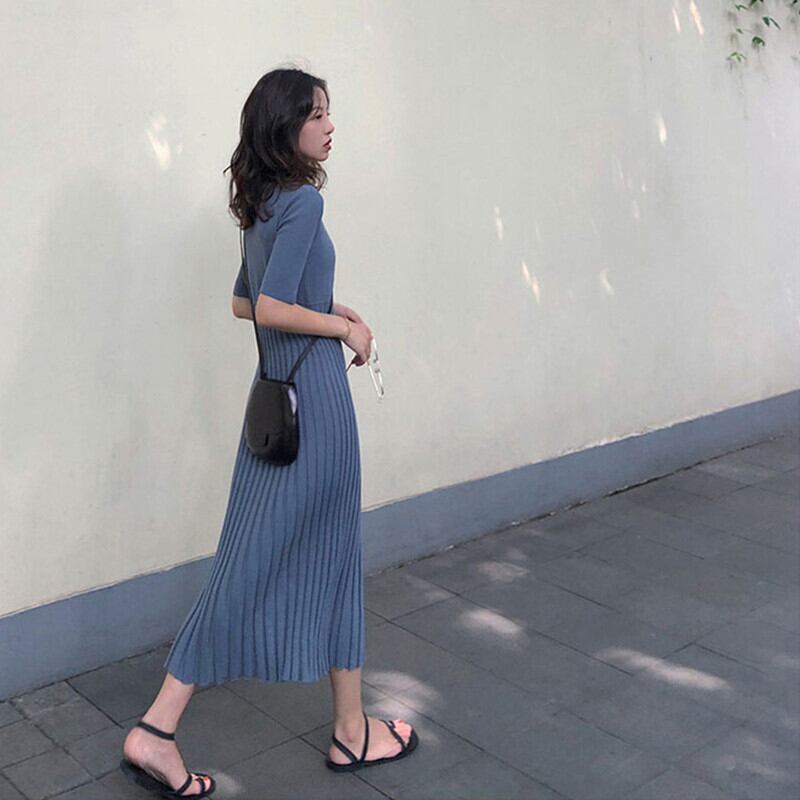 ワンピース ドレス ニットワンピース プリーツスカート ロング ロング丈 半袖 5分袖 五分袖 ラウンドネック スリム 細身 プリーツ ニット サマーニット 大人可愛い きれいめ シンプル 大人 上品 おしゃれ 大人女子 こなれ感 個性的 エレガント とろみ感 抜け感 シック 無地 春 夏 秋 冬 オールシーズン 誕生日 卒園式 謝恩会 ハロウィン 20代 30代 40代 レディース 女性用 ママ ビジネス OL 通勤 学生 通学 デート お出かけ 高原 ホテル ガーデン レストラン ショッピング