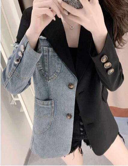 トップス ジャケット ブレザー テーラード トラッド Gジャン デニム コンビ 袖あり長袖 襟付き バイカラー MIXカラー 異素材MIX 切り替えデザイン ドッキング アシンメトリー レディース ガーリー かわいい 大人可愛い お洒落 おしゃれ 大人カジュアル 大人女子 ラフ コーデ モテ デート 普段使い デイリー メンズライク ボーイッシュ 存在感 主役級 個性的 こなれ感 抜け感着回し デイリー 日常使い 学校 通学 上品 20代 30代 40代 春 秋 冬 S M L XL 黒 ブラック