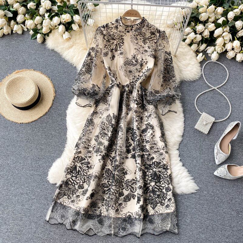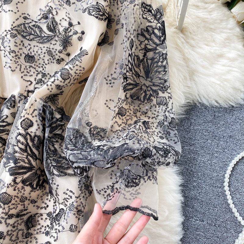 ワンピース ドレス パーティードレス ワンピドレス ミモレ ミモレ丈 ロング ロング丈 長袖 パフスリーブ フレア Aライン レース 刺繍 透け感 シースルー アンティーク 大人可愛い きれいめ 大人 上品 おしゃれ レトロ 大人女子 ラブリー キュート ガーリー 個性的 エレガント 主役級 存在感 シック 花柄 春 夏 謝恩会 二次会 20代 30代 40代 レディース 女性用 ママ デート お出かけ パーティー イベント ホテル ガーデン レストラン ショッピング S M L XL 2XL ベージュ